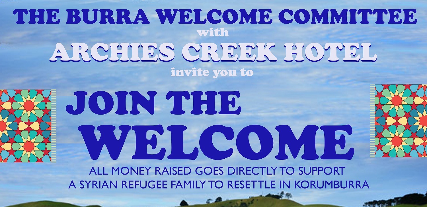 The Burra Welcome Committee is proud to announce a spectacular lineup of local bands to take part in the fundraising event, Join the Welcome, held at Archie’s Creek Hotel on March 12th. All money raised from ticket sales will go directly to support a Syrian refugee family of six to settle in Korumburra in March. The pilot program was launched by the federal Community Refugee Integration and Settlement program (CRISP) and relies heavily on community support. The Korumburra committee would like to invite everyone to come along and help enrich the lives of the sponsored refugee family and raise awareness about the global refugee crisis.